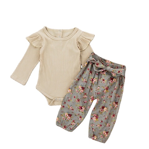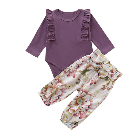 Hot Koop Baby Baby Peuters Lange Mouw Romper Broek Set Nieuwe Herfst Winter Oem Service Bloemen Kleding Set Ondersteuning 5 sets Rand