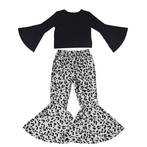2 Stuks Baby Meisje Kleding Set T-shirt Tops Luipaard Print Bell-Bottoms Broek Flared Broek Outfits Kids Kleding Meisjes set